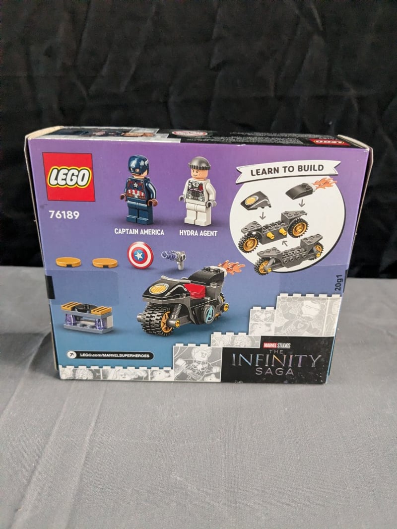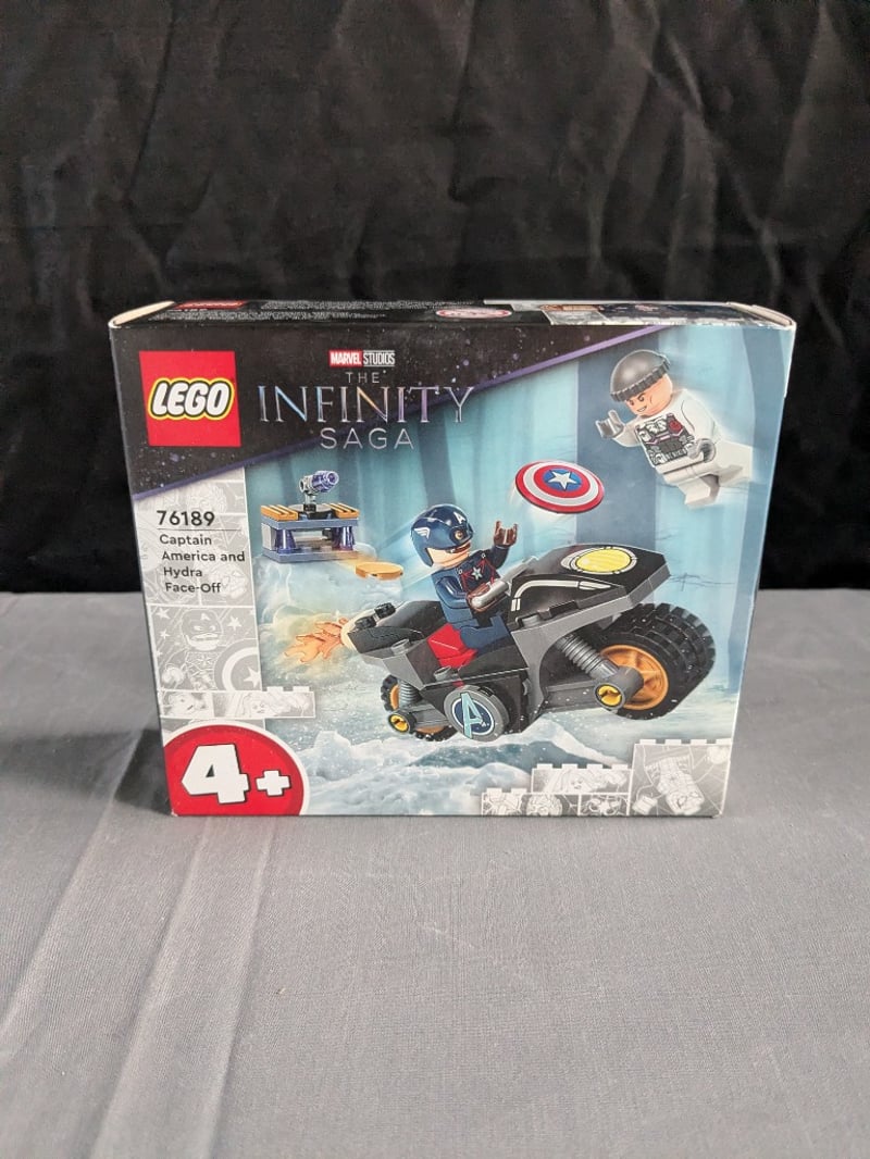 LEGO MARVEL INFINITY SAGA SET 76189 - CAPTAIN AMERICA AND HYDRA FACE-OFFLego Marvel Studios Infinity Saga Set 76189 Featuring Captain America Minifigure With Shield, Hydra Agent Minifigure, Motorized Vehicle With Orange/Gold Wheels And Black Chassis, Hydra Weapons Cache, And Instruction Manual. 4+ Age Rating. Complete Boxed Set With Original Packaging.Condition: Good - Refer To Images584572+154