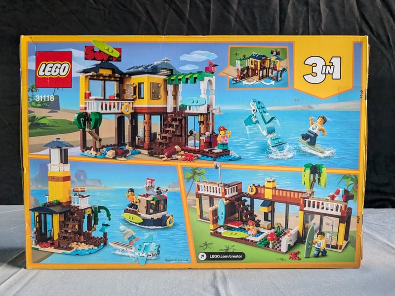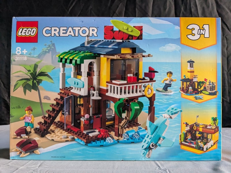 LEGO CREATOR 3-IN-1 BEACH HOUSE SET #31118Lego Creator 3-In-1 Set #31118 Featuring A Modular Beach House With Lighthouse, Boat, And Alternative Configurations. Includes Minifigures, Surfboard, And Water Elements. Age 8+. Complete Boxed Set With Original Packaging Showing All Three Building Variations.Condition: Good - Refer To Images584572+156