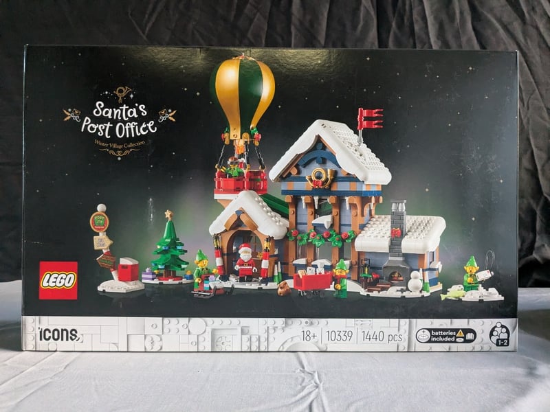 Lego Icons Santa'S Post Office (Set 10339) From The Winter Village Collection. Comprehensive Building Set Featuring 1,440 Pieces With Intricate Architectural Detailing. Includes Gingerbread-Style Post Office Building With Snow-Laden Roof, Working Light Brick, Hot Air Balloon With Gift Basket, Christmas Tree, And Multiple Minifigures. Features Detailed Interior Scenes With Postal Sorting Areas, Gift Wrapping Station, And Festive Decorations. Designed For Ages 18+. Includes Batteries For Light Bri