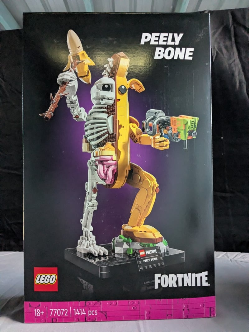 LEGO FORTNITE PEELY BONE FIGURE SET 77072Lego Fortnite Peely Bone Buildable Figure Set (77072) Comprising 1414 Pieces. Features Articulated Yellow And White Skeletal Banana Character With Poseable Limbs, Detailed Bone Structure, And Integrated Weapon Accessories. Includes Display Base And Instruction Manual. Recommended For Ages 18+. Collectible Video Game Merchandise In Original Sealed Packaging.Condition: Good - Refer To Images584572+160