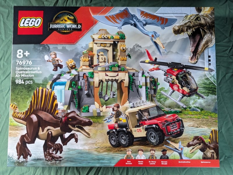 LEGO JURASSIC WORLD 76976 SPINOSAURUS & QUETZALCOATLUS AIR MISSION SETLego Jurassic World Set 76976 Featuring A Multi-Level Stone Command Tower With Functional Gates, Helicopter Landing Pad, And Detailed Dinosaur Enclosure. Includes 984 Pieces With Minifigures (Elma Sattler, Martin Kratt, Dr. Henry Lockwood, Duncan Barlow), Articulated Spinosaurus And Quetzalcoatlus Dinosaur Figures, Red Rescue Helicopter, And Tan/Red All-Terrain Vehicle. Comprehensive Playset With Interactive Elements And Authentic Jurassic World Theming Suitable For Ages 8+.Condition: Good - Refer To Images584572+170