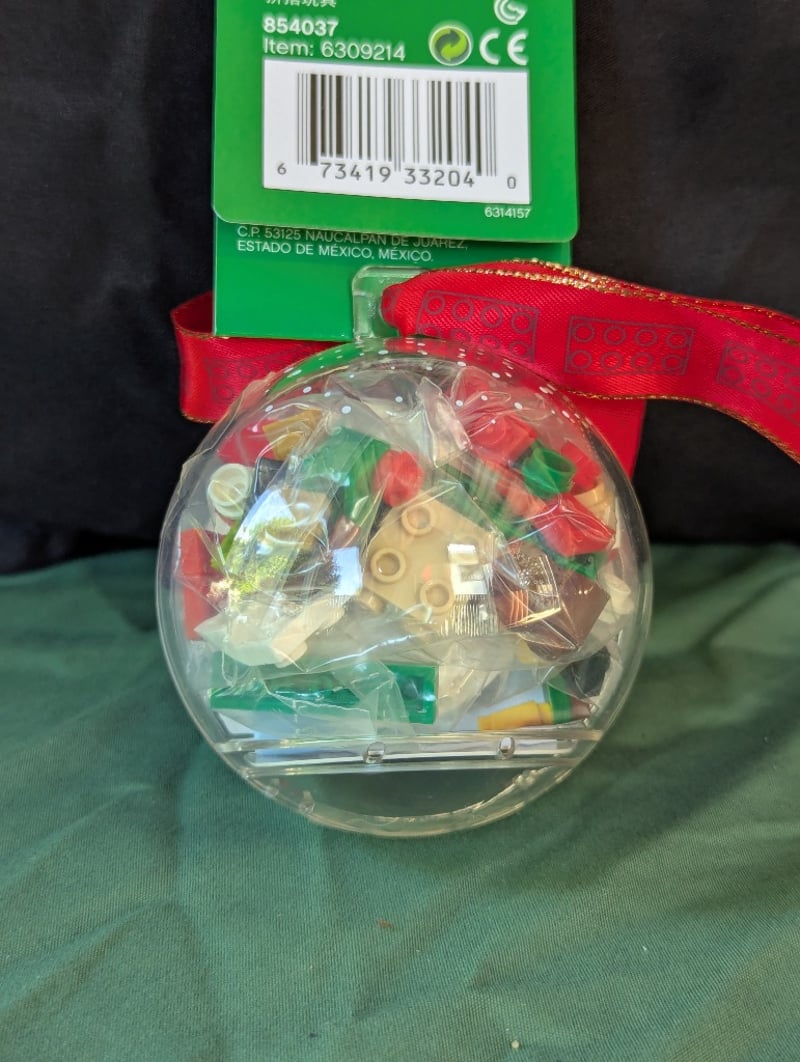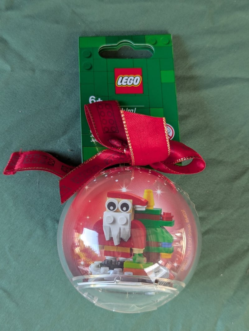 LEGO CHRISTMAS ORNAMENT BAUBLE - SANTA FIGURE SET 630214Festive Lego Christmas Ornament Featuring A Buildable Santa Figure With White Beard And Red Suit, Housed In A Clear Acrylic Sphere With Red Ribbon Bow. Includes Assorted Coloured Lego Bricks For Construction. Original Green Packaging With Instruction Manual. Item Number 630214, Manufactured In Mexico.Condition: Good - Refer To Images584572+178