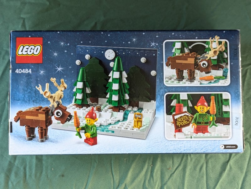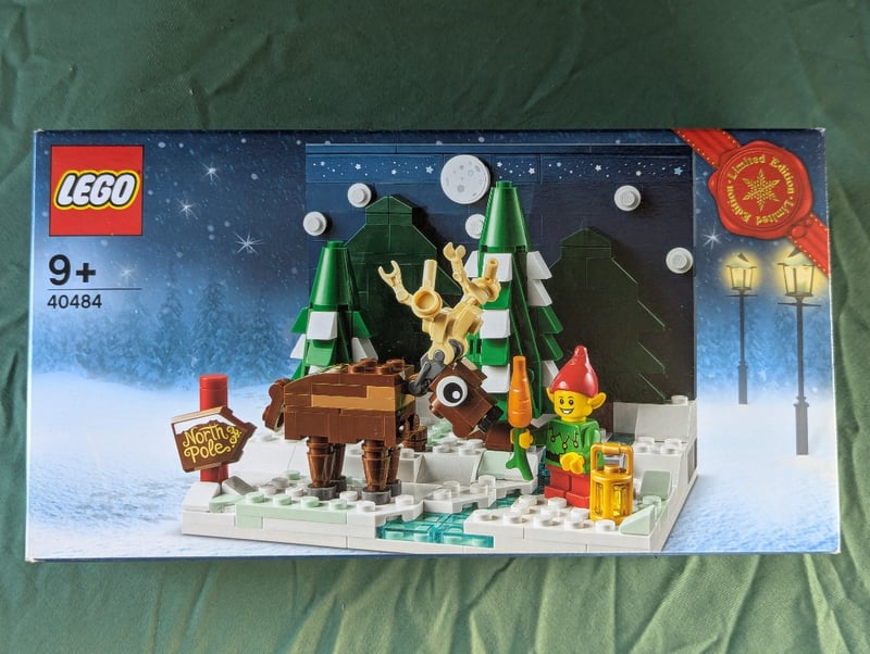 LEGO 40484 NORTH POLE SCENE CHRISTMAS HOLIDAY SETLego Set 40484 Featuring A Festive North Pole-Themed Winter Scene With Green And White Striped Evergreen Trees, A Brown Reindeer Figure With Golden Antlers, An Elf Minifigure In Green Attire With Red Hat, Snow-Covered Baseplate With Decorative Elements Including A "North Pole" Sign, Street Lamps, Lantern, And Carrot. Designed For Ages 9+. Sealed Original Packaging With Complete Retail Presentation Showing Front And Back Box Artwork With Assembly Instructions Visible.Condition: Good - Refer To Images584572+187