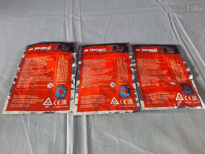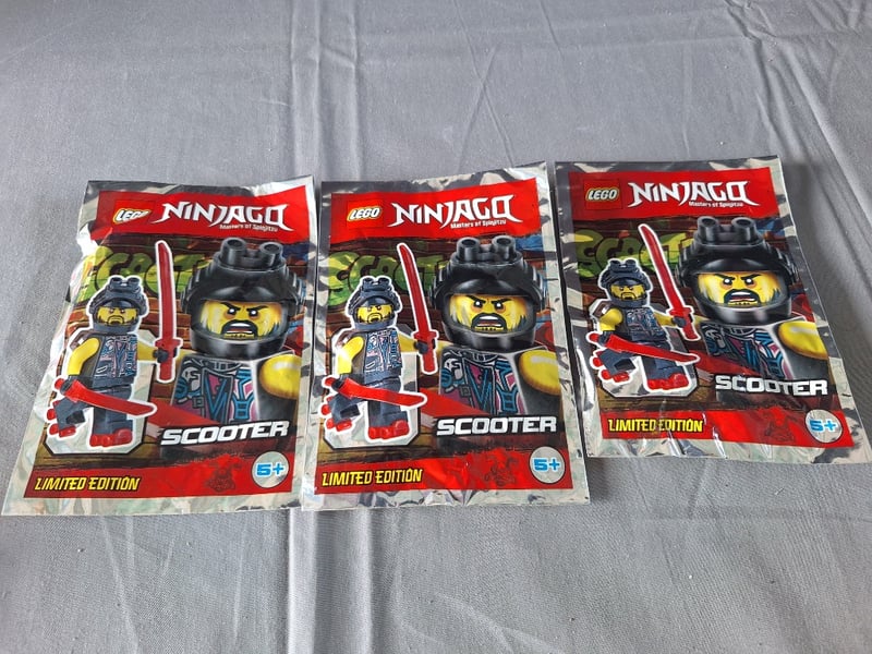 LEGO NINJAGO LIMITED EDITION SCOOTER MINIFIGURE POLYBAG SET (3 UNITS)Three Sealed Lego Ninjago Limited Edition Scooter Minifigure Polybags Featuring The Scooter Character With Black Samurai Helmet, Yellow Face, Red Katana Sword, And Red Scooter Element. Each Polybag Marked "Limited Edition" With Age Rating 5+. Packaging Displays Multilingual Instructions On Reverse. All Three Units Appear Factory Sealed And Unopened In Original Condition.Condition: Good - Refer To Images584571+858
