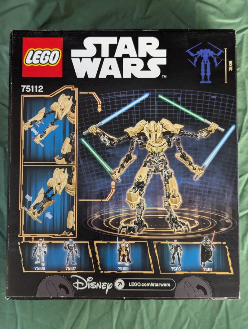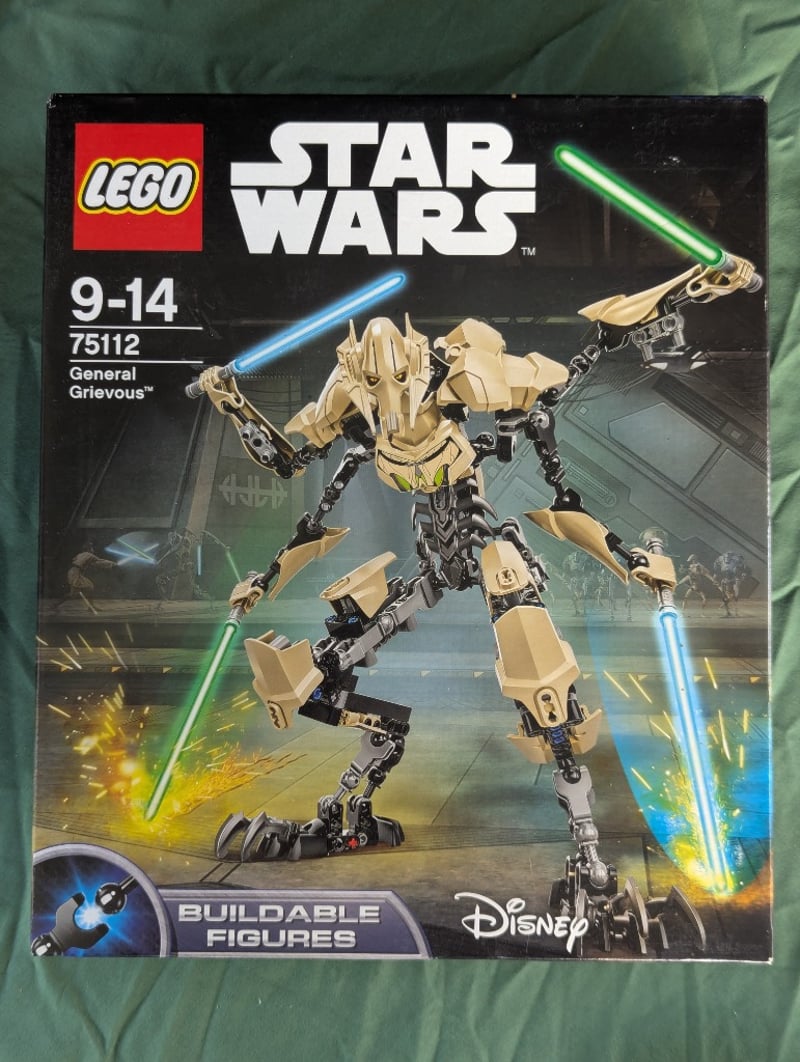 Lego Star Wars Buildable Figure Set 75112 Depicting General Grievous, The Fearsome Separatist Commander. Features Articulated Tan And Black Construction With Dual Blue And Green Lightsaber Accessories. Includes Transformable Design With Poseable Limbs And Rotating Joints. Age Range 9-14 Years.