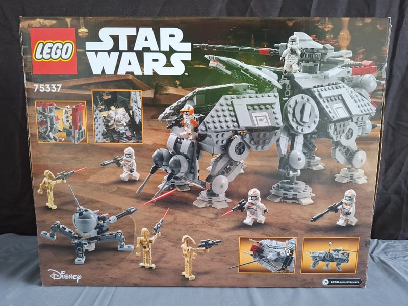 Lego Star Wars At-Te Walker (Set 75337) Featuring A Detailed Motorized Six-Legged Walker With Articulated Limbs, Opening Cockpit And Cargo Compartment, Includes 9 Minifigures (Clone Troopers, Battle Droids, C-3Po Variants), And Accessories With Red Laser Blasters. Age 9+. Unopened Factory Sealed Condition With Original Packaging Intact.