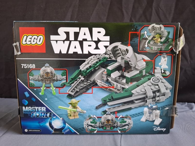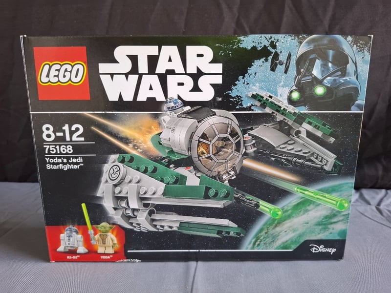 Lego Star Wars Set 75168 Featuring Yoda'S Jedi Starfighter With Green And White Colour Scheme. Complete With Minifigures Including Yoda And R2-D2. Set Includes Detailed Starfighter Model With Opening Cockpit, Landing Gear, And Spring-Loaded Shooters. Original Packaging Shows Age-Appropriate Rating 8-12 Years. Features Master Yoda Force Branding On Box. Includes Instruction Manual And All Visible Components Displayed On Retail Packaging.