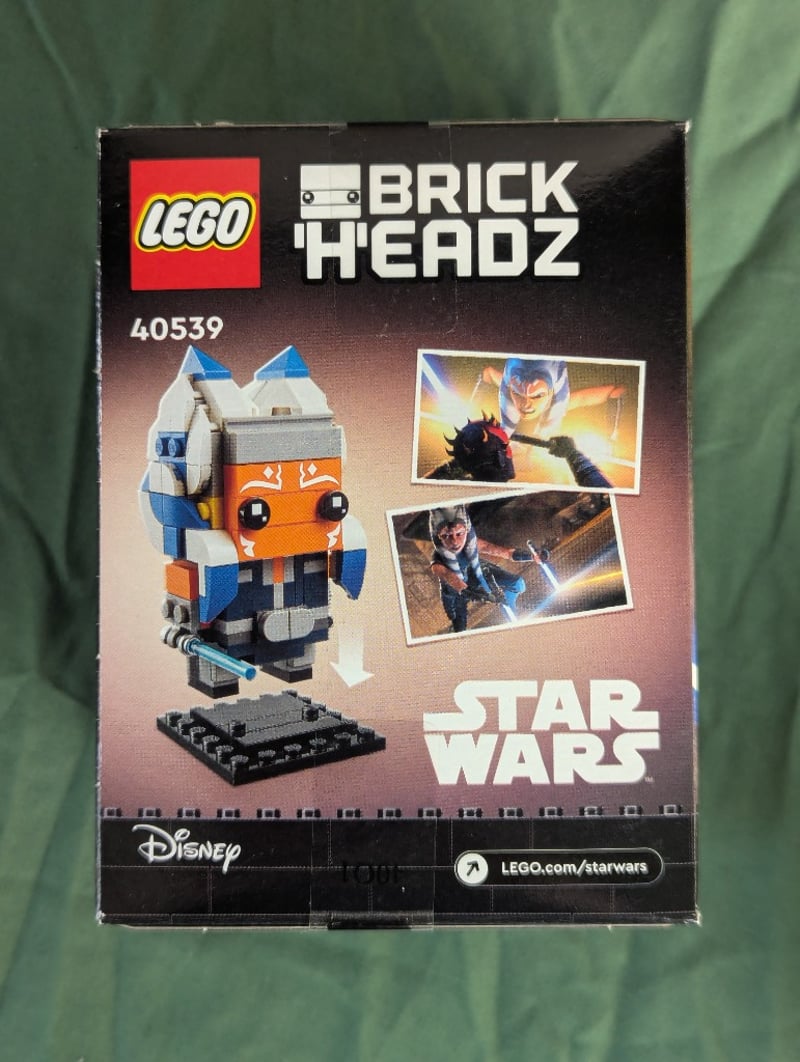 LEGO BRICKHEADZ AHSOKA TANO STAR WARS SET 40539Lego Brickheadz Construction Set #40539 Featuring Ahsoka Tano From Star Wars. Character Head Figure With Orange And Blue Coloring, White Facial Markings, And Articulated Components. Includes Printed Instruction Manual With Character Imagery. Recommended For Ages 10+. Original Sealed PackagingCondition: Good - Refer To Images584570+503