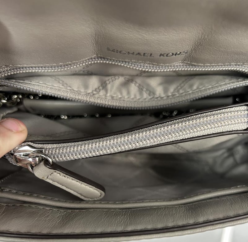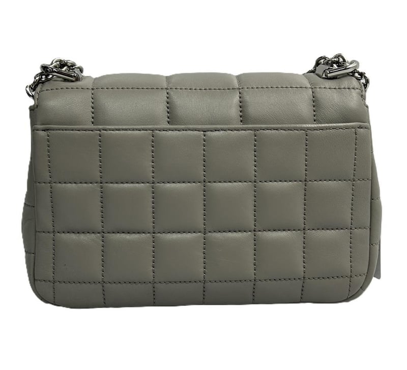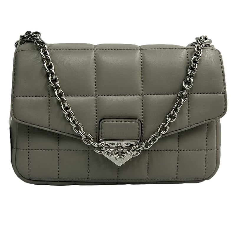 MICHAEL KORS SOTTO GREY LEATHER QUILTED SHOULDER BAG