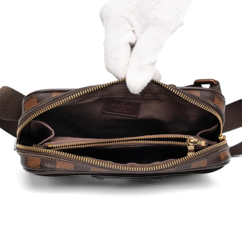 Crafted From Signature Damier Ebene Coated Canvas With Dark Brown Leather Trim, Adjustable Canvas Strap With Bronze Metal Hardware, Top Zip Closure With Lv-Engraved Pull, Front Slip Pocket, Interior Features Central Zip Compartment With Additional Storage And 4 Card Slots, Measures Approx. 20 X 13 X 4Cm, Made In Spain. Condition: Pre-Owned With Light Wear To Canvas And Edges, Minor Scuffs To Leather Trim, Hardware Shows Light Scratches & Wear, Interior Clean With Minimal Signs Of Use, Overall Good Condition. This Item Has Been Professionally Verified As A Genuine Product And Comes With Accompanying 3Rd Party Certificate Of Authenticity