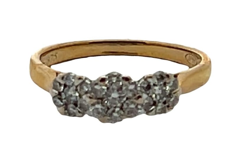 9CT YELLOW GOLD 0.40CT DIAMOND CLUSTER RING21 Round Brilliant Cut Diamonds Set In 3 Clusters Of 7, Estimate Total Diamond Weight 0.40Ct, Stamp 375, Ring Weight 2.2 Grams. This Item Has Been Professionally Verified As A Genuine Product And Comes With Accompanying 3Rd Party Certificate Of AuthenticityCondition: Good - Refer To Images584579+55