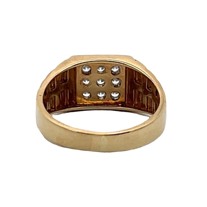 9CT YELLOW GOLD CUBIC ZIRCONIA RING With Pattern Shoulders, 9 Round Cut Cubic Zirconia'S Pave Set In Square Top, Stamp 375, Ring Weight 5.7 Grams. This Item Has Been Professionally Verified As A Genuine Product And Comes With Accompanying 3Rd Party Certificate Of AuthenticityCondition: Good - Refer To Images584579+54