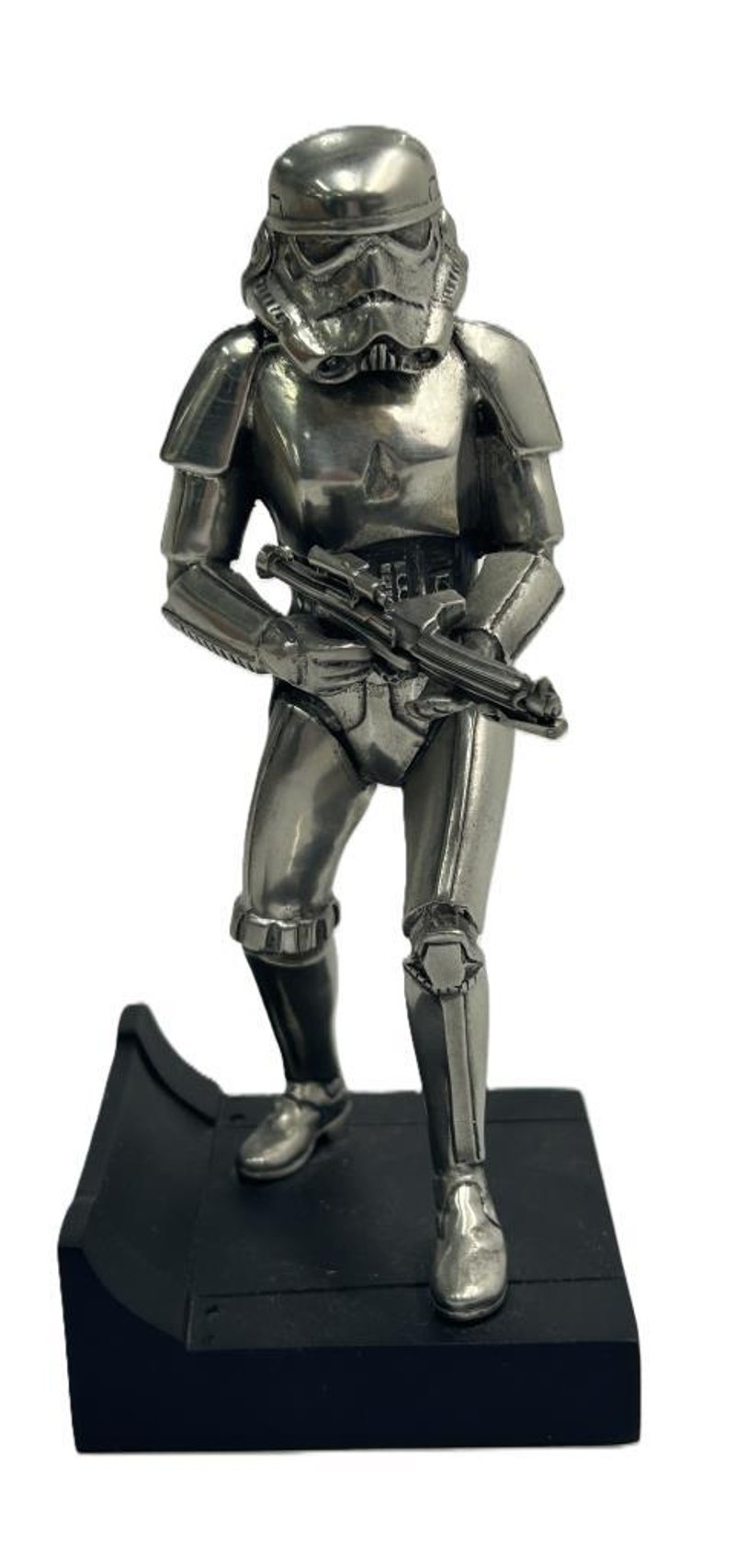 ROYAL SELANGOR PEWTER STORMTROOPER FIGURINEA Finely Crafted Royal Selangor Pewter Stormtrooper Figurine Inspired By The Iconic Star Wars Imperial Soldier. Featuring Detailed Armour And Blaster Design, This Collectible Piece Is Made From High-Quality Pewter And Mounted On A Display Base. Measures 14 X 7 Cm.Condition: Good - Refer To Images584579+50
