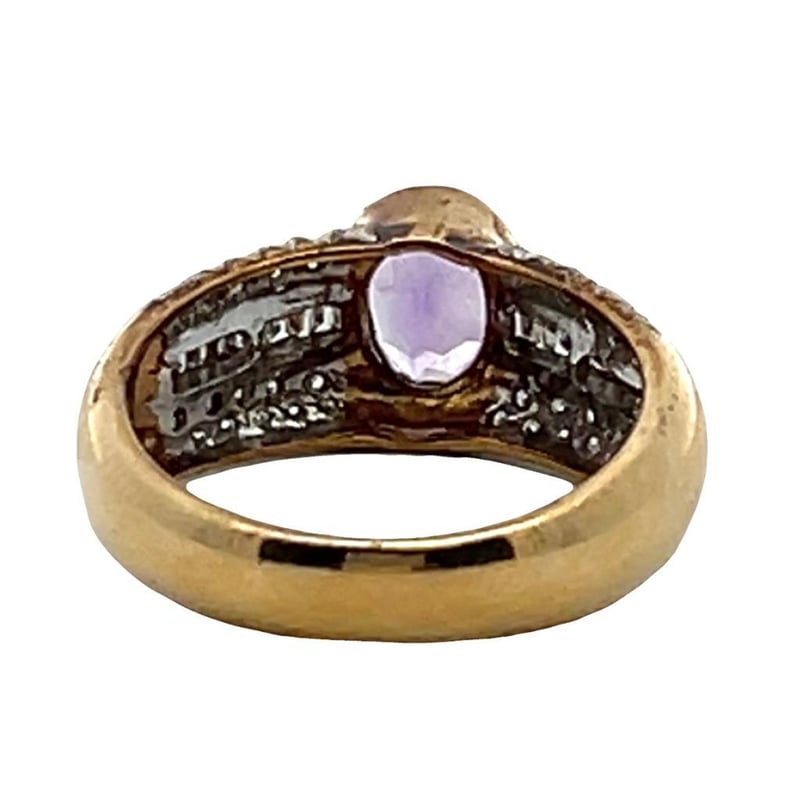 9CT YELLOW GOLD AMETHYST & 0.30CT DIAMOND RINGOval Cut Amethyst Rub-Over Set With 10 Baguette Diamonds & 20 Round Brilliant Cut Diamonds Pave Set In Each Shoulder, Estimate Total Diamond Weight 0.30Ct, Stamp 375, Ring Weight 4.6 Grams. This Item Has Been Professionally Verified As A Genuine Product And Comes With Accompanying 3Rd Party Certificate Of AuthenticityCondition: Good - Refer To Images584579+24