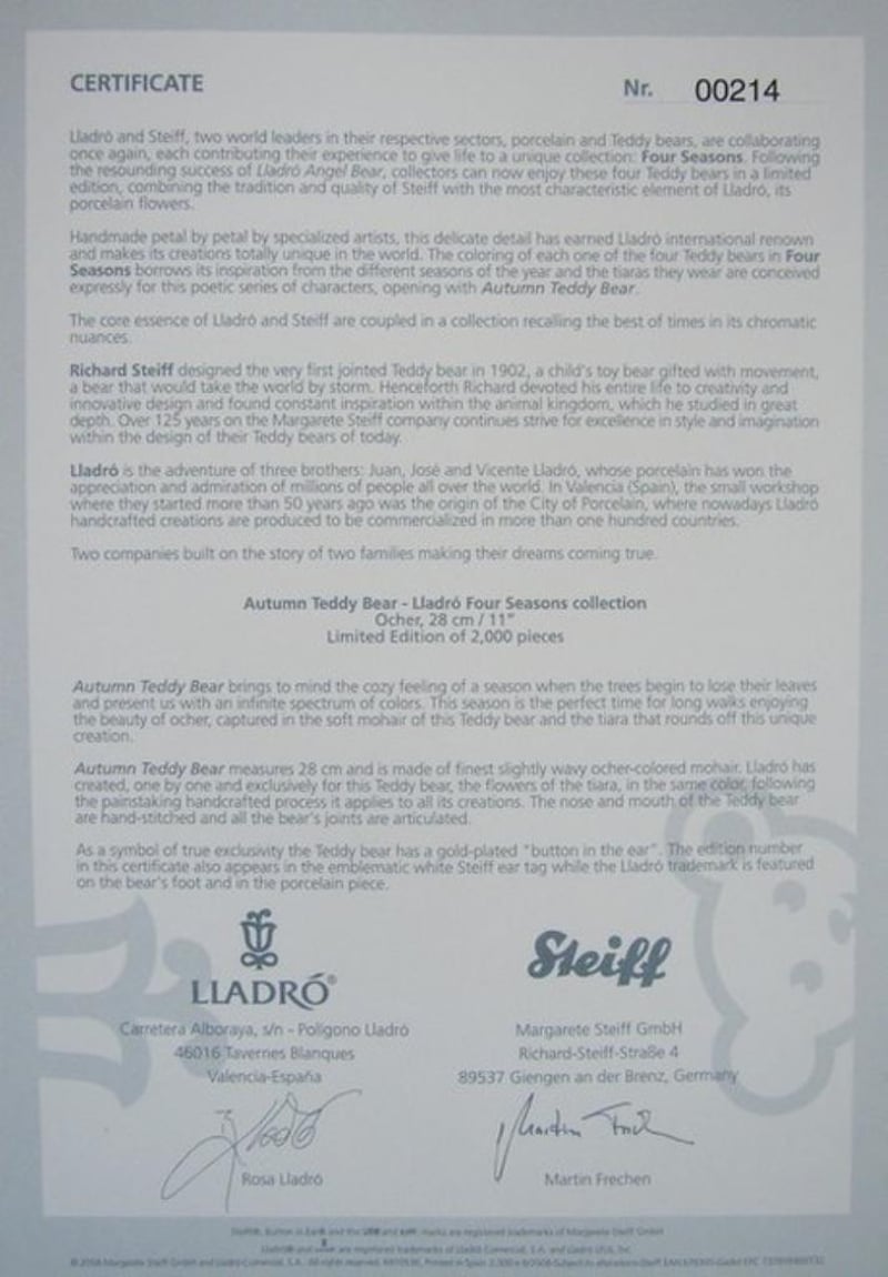 STEIFF/LLADRO 2008 AUTUMN TEDDY BEAR LIMITED EDITION 2000