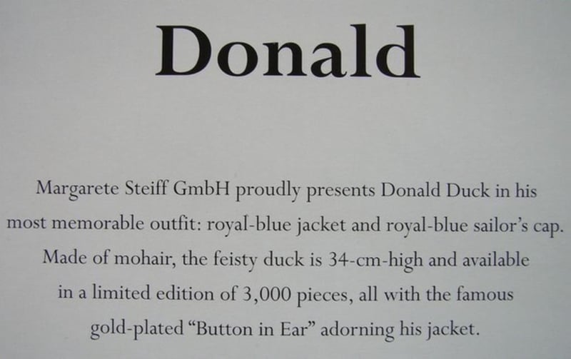 STEIFF DONALD DUCK LIMITED EDITION 3000