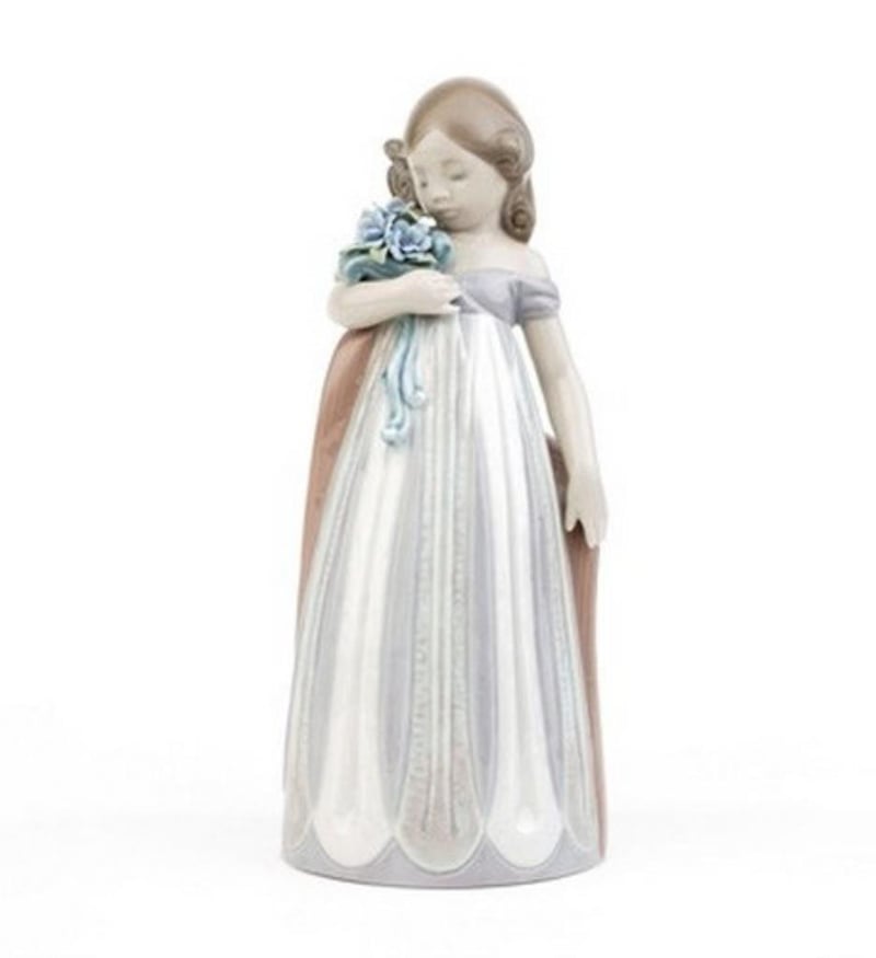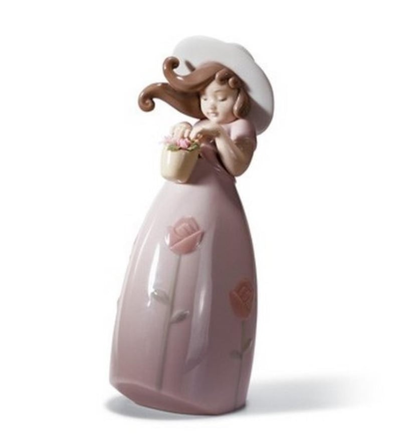 LLADRO LITTLE ROSE AND LLADRO PETALS CARESS (2 FIGURINES)Glossy Little Porcelain Figurine Girl In A Long Pink Dress Decorated With Long-Stemmed Flowers And A White Hat Delicately Holding A Basket Of Roses Against The Wind. Lladro Petas Caress The Piece Features A Young Girl (Child) Holding Or Looking At A Bouquet Of Flowers, Embodying Themes Of Affection And Innocence Size: 18 X 18Condition: Good - Refer To Images233673+4