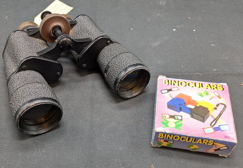 1920S C.P. GOERZ BERLIN MARINE-TRIEDER BINOCULARS AND 380PC TOY BINOCULARS SET Binoculars Include 8X38 Centre Focus Model , Toy Binoculars Are Unopened Condition: Good - Refer To Images 584455+5