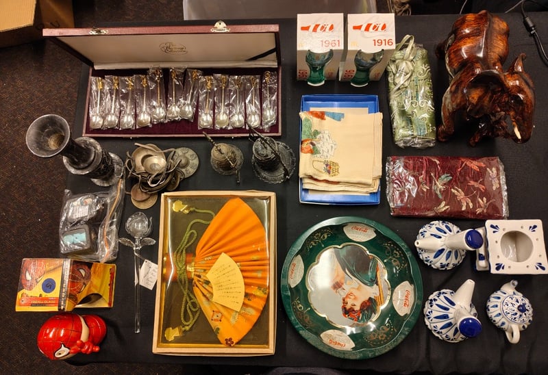 COLLECTION OF ANTIQUE ITEMS, INCLUDING JAPANESE ARTIFACTS, CUTLERY, AND MORE