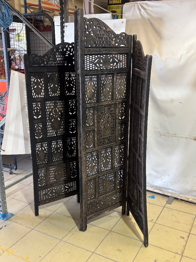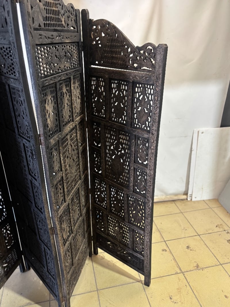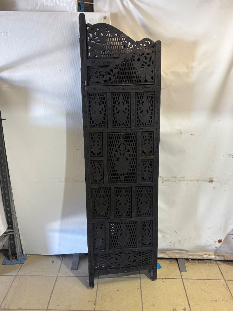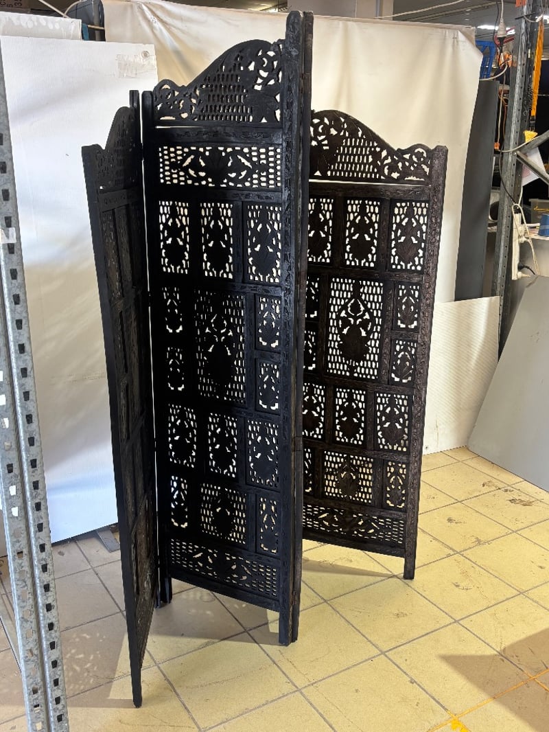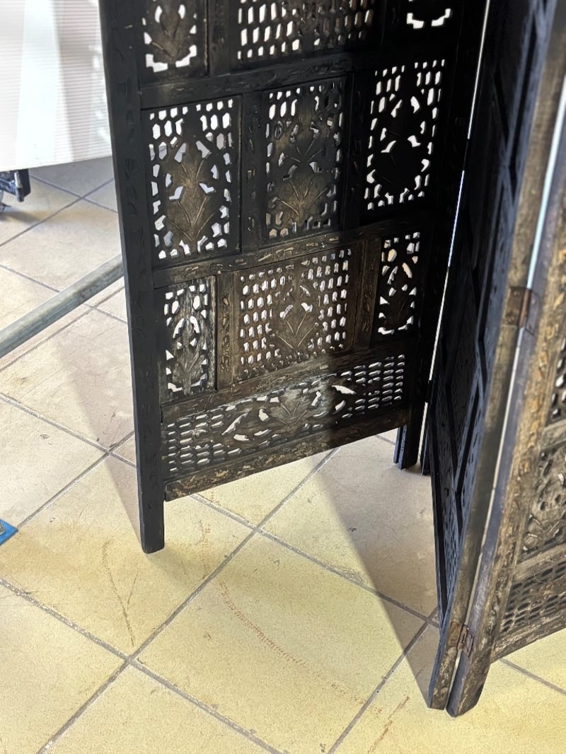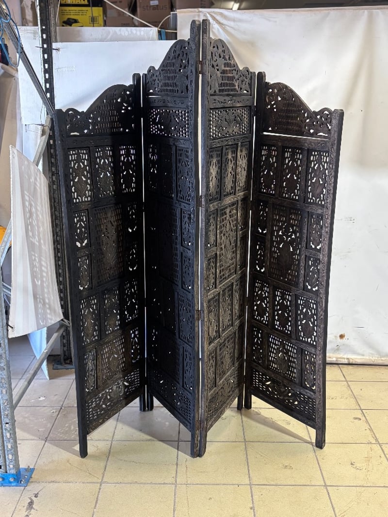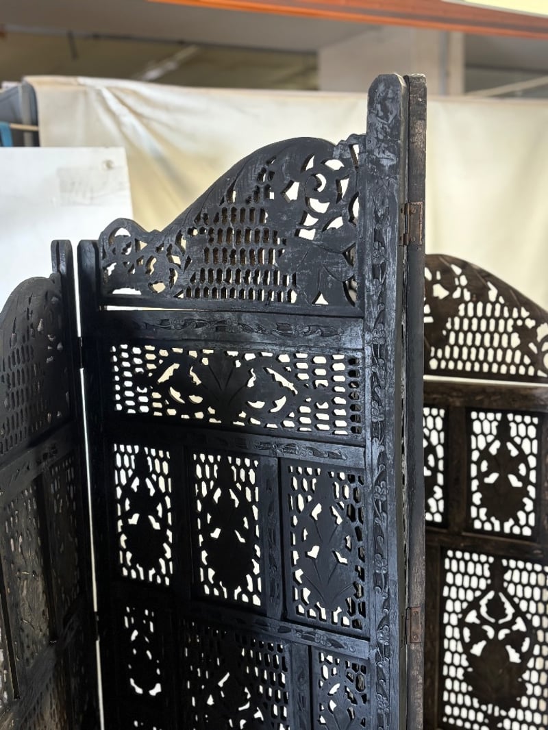 4-Panel Divider, Carved Wood, Jaali Style, Dark Mango Wood-Like Finish