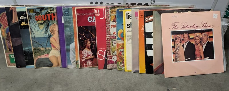 COLLECTION OF VINYALS AND BOOKS, INCLUDES SOUTH PACIFIC, THE SATURDAY SHOW AND MORE
