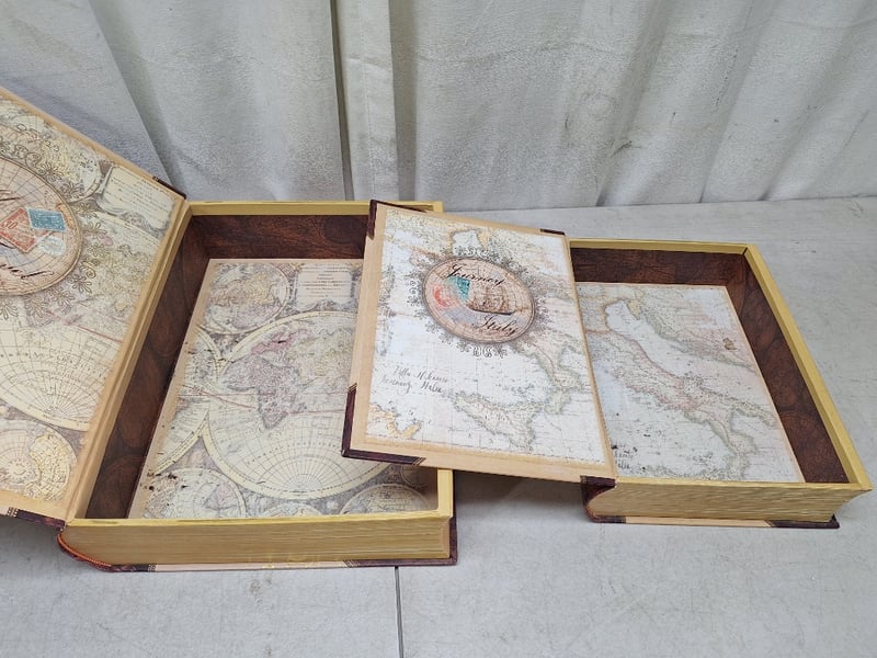 2 x PUNCH STUDIO secret compartment cardboard books, "Mer Pacifique", 1 x vintage collectible miniature sword letter opener, 1 x NATIO untrasonic essential oil diffuser, model: 183N1, RRP$ 69.95, NEW in box