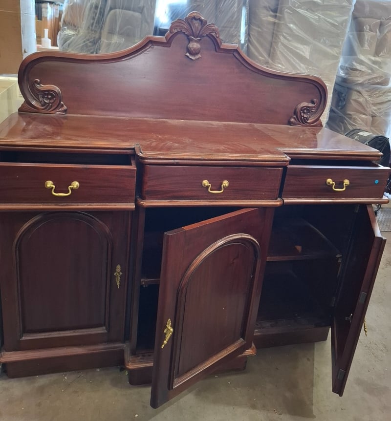 Timber sideboard with shelves and drawers