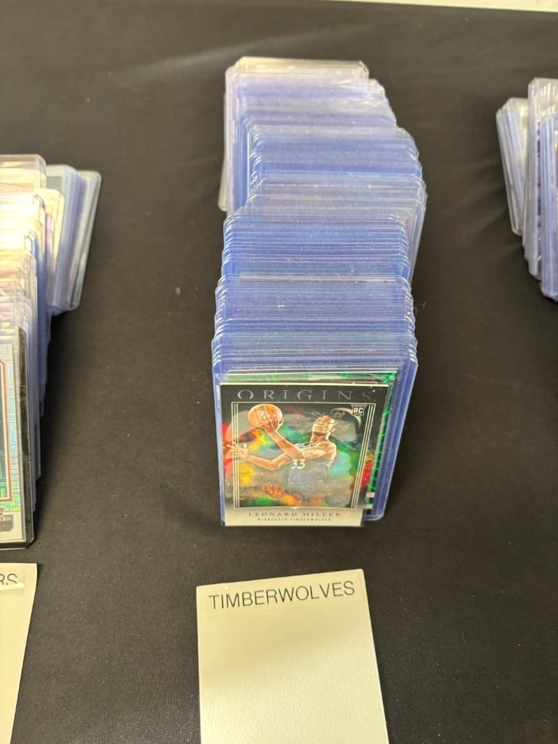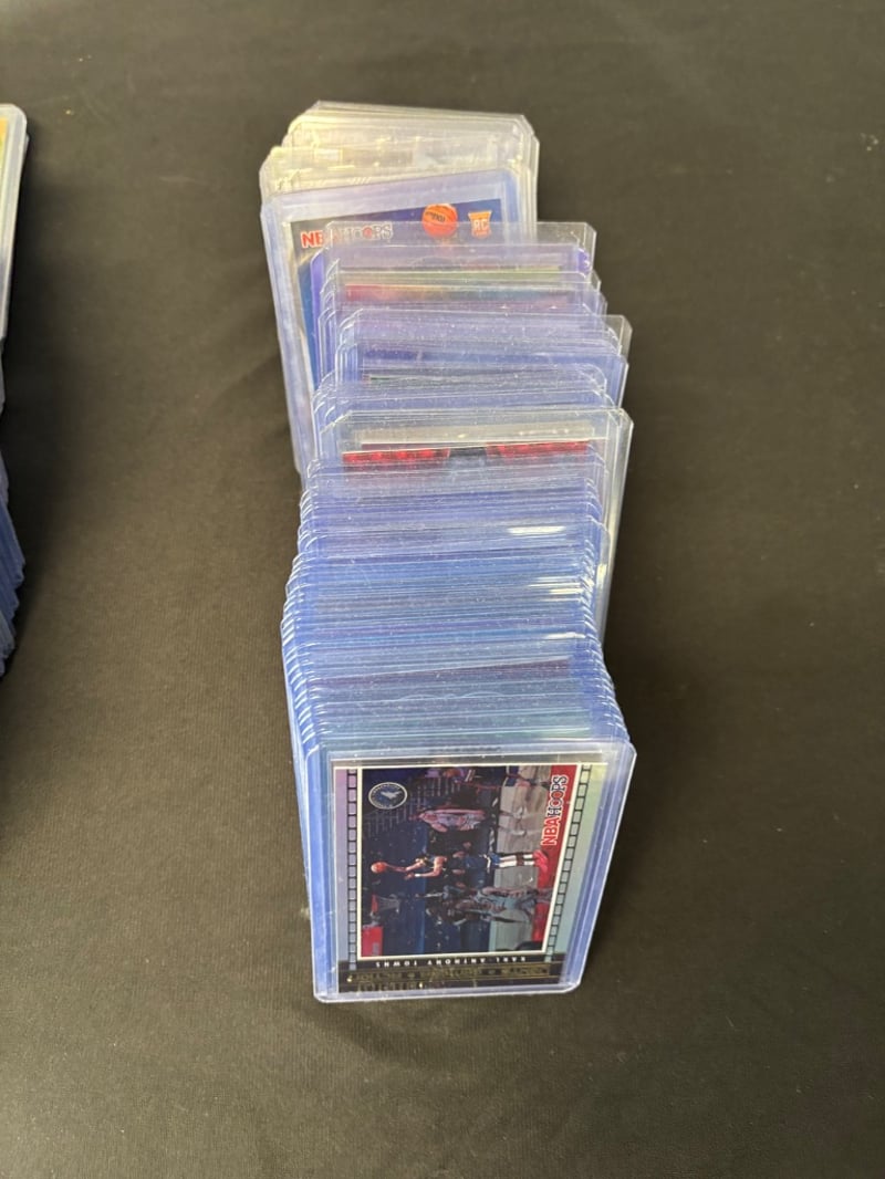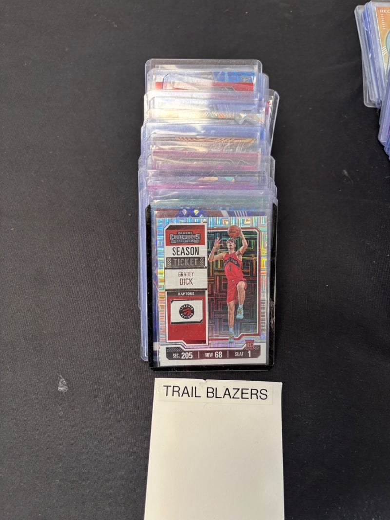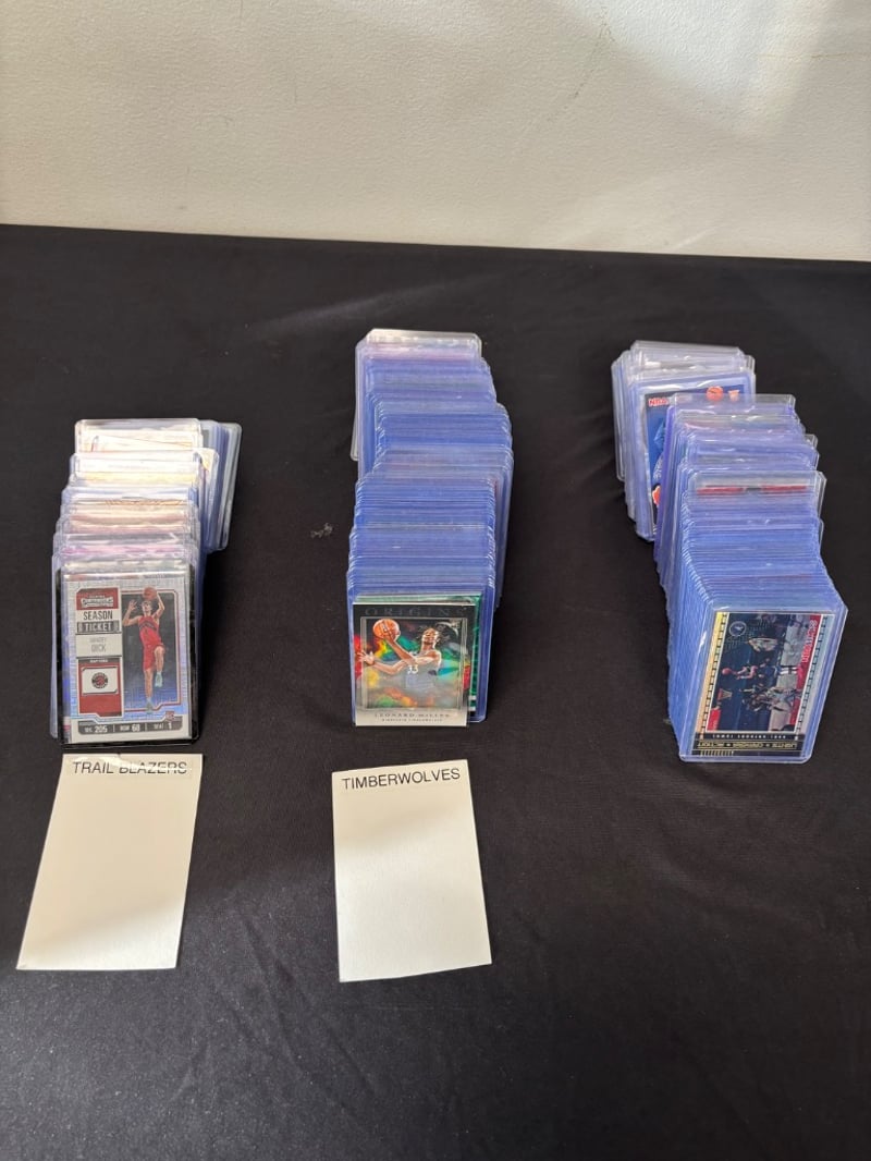 Organized Collection Of Nba Trading Cards Featuring Portland Trail Blazers And Minnesota Timberwolves Players, Housed In Clear Protective Cases.