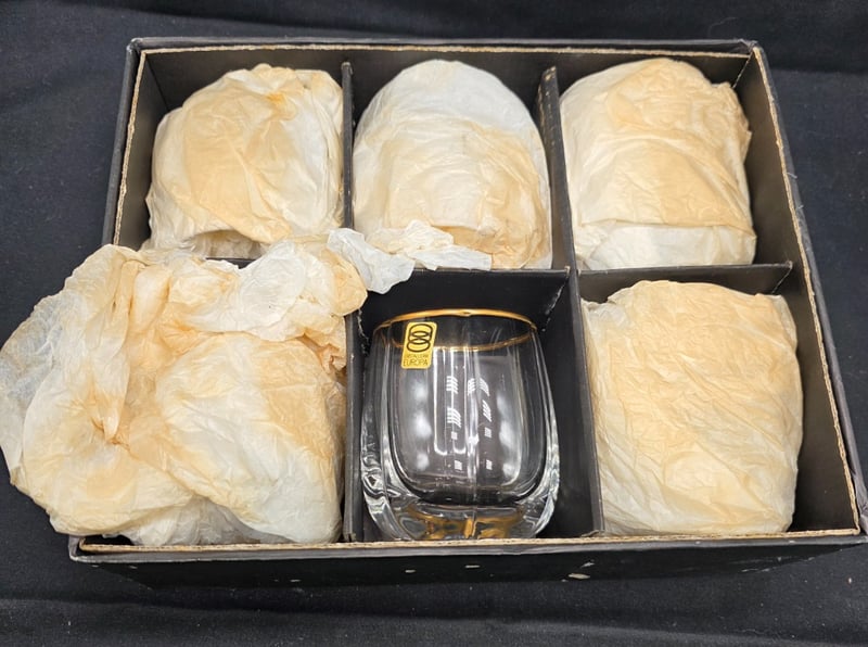SET OF 6 GLASS EUROPA SPA GARDEN ORO GLASSES Item Size: Height: 10cm, Width: 20cm, Depth: 28cm, Weight: 0.1Kg Condition: Good - Refer To Images 584542+11