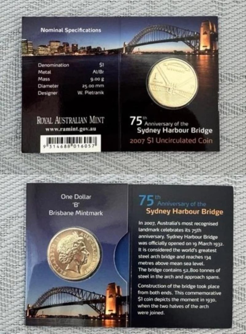 2007 $1 75TH ANNIVERSARY OF THE SYDNEY HARBOUR BRIDGE MINTMARK "B" UNCIRCULATED 10244+11