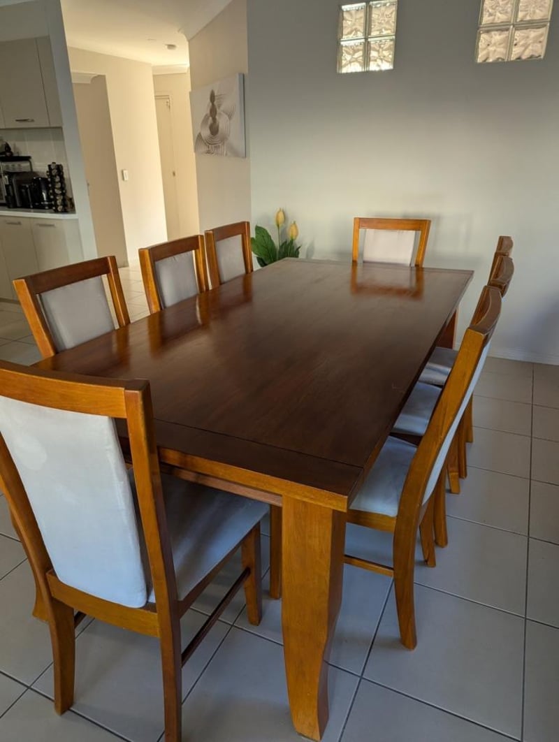 The Suite Consists Of A 2.1 Metre Long, 1 Metre Wide Solid Rectangular Table With Eight (8) Upholstered Solid Chairs, Can Accommodate Up To Ten (10) Chairs.