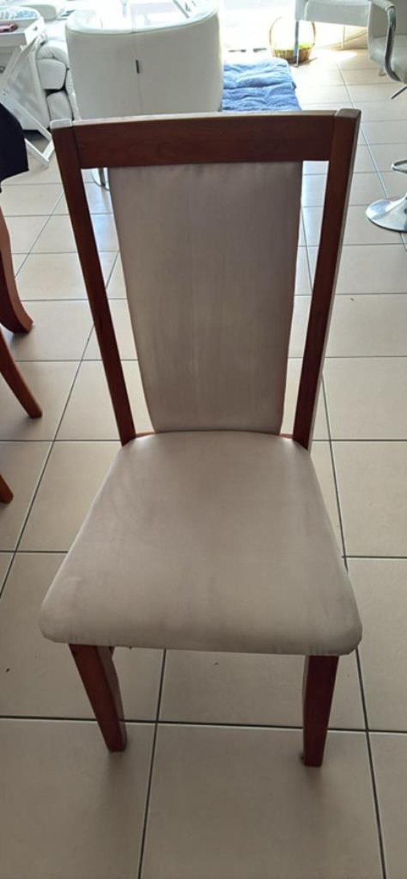 The Chairs Are All Spotlessly Clean And Upholstered In A Cream Microfiber Suede Fabric.