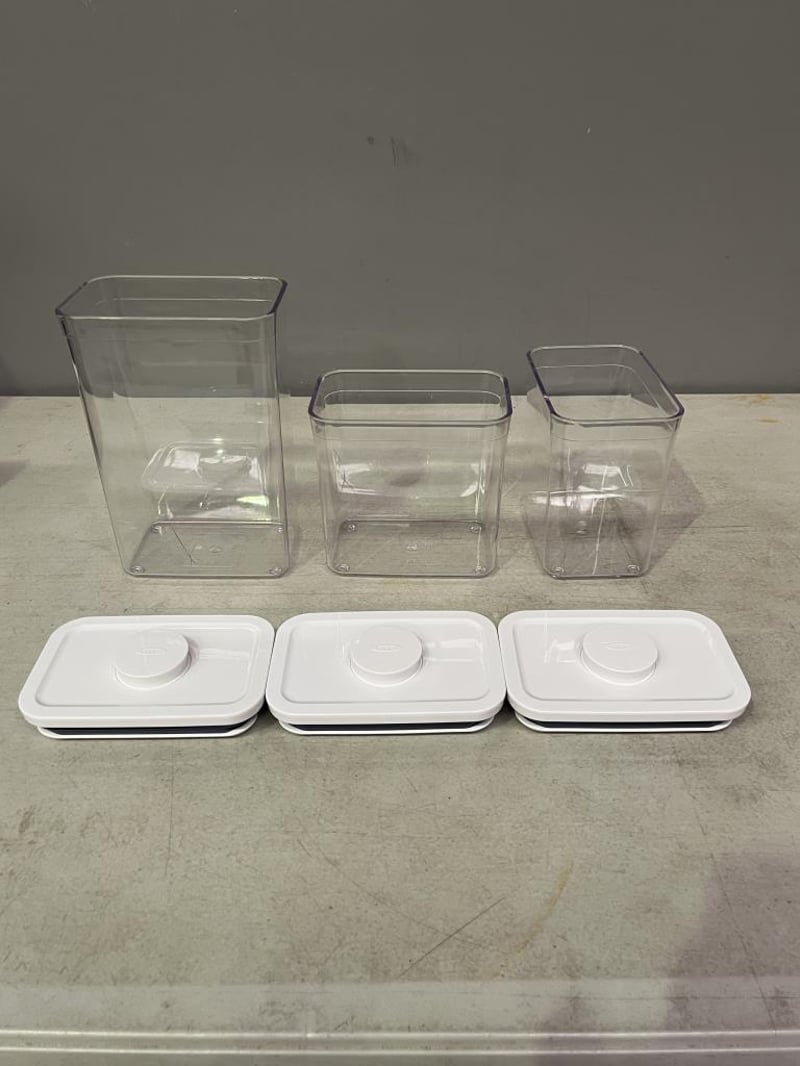 Bundle Listing - 2 x OXO Good Grips POP 2.0 Rectangle Storage Container (1.6 Litre) + 1 x OXO Good Grips POP 2.0 Rectangle Storage Container (2.6 Litre) - REFURBISHED WORKING OK CONDITION (EACH CONTAINER HAS SLIGHT CRACK DUE TO TRANSIT REFER TO PHOTO)