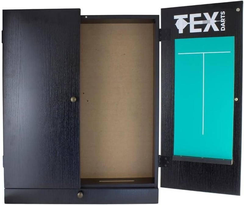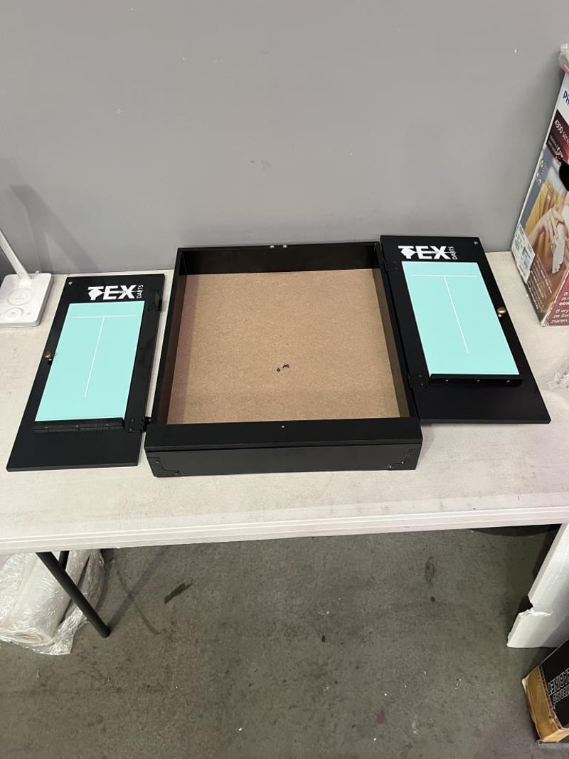 RRP $109 TEX Darts TEX Cabinet - REFURBISHED WORKING ITEM IS IN GOOD/ OK CONDITION (NOTE LEFT DOOR SCREW HOLES DAMGED REFER TO PHOTO)
