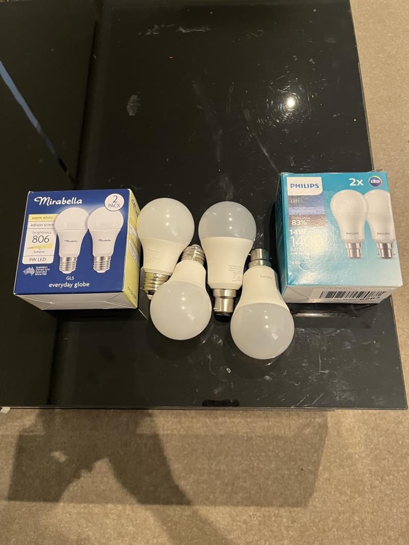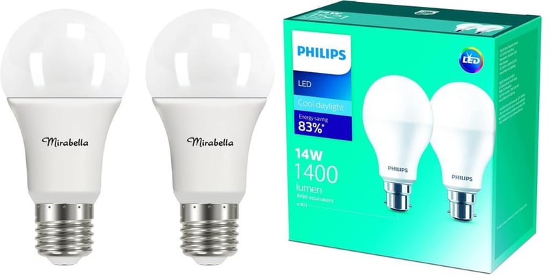 Bundle Listing - 1 x Mirabella LED 2 Pack GLS ES 9W 806 Lumen 2700K (Warm White) + 1 x Philips 1400 Lumen BC LED Bulb 2 Pack - REFURBISHED WORKING EXCELLENT CONDITION