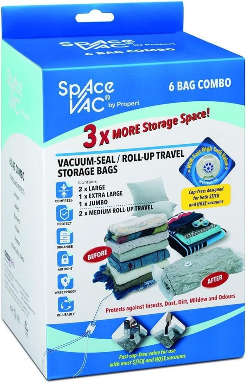 Space Vac Space Saver Bag Combo 6 Pack - REFURBISHED WORKING GOOD/ OK CONDITION (MISSING 1 x EXTRA LARGE + 1 x MEDIUM ROLL-UP TRAVEL)