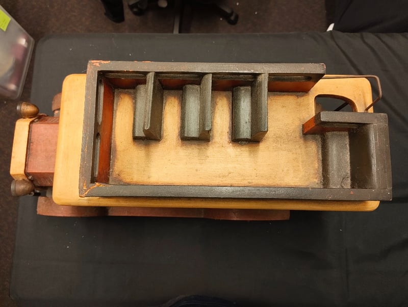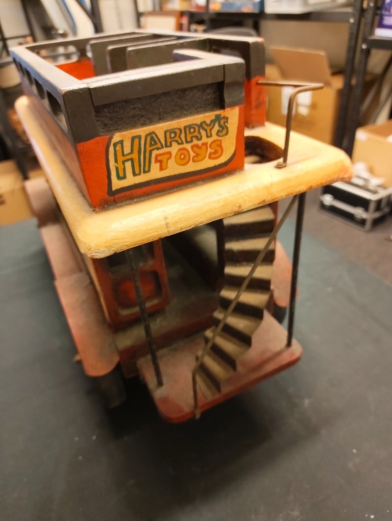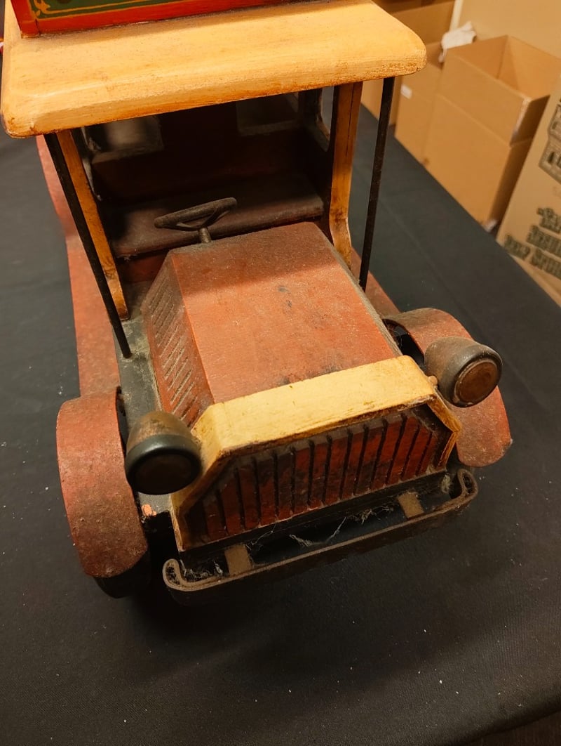 VINTAGE HARRY'S HOT DOGS WOODEN TOY TRUCK WITH METAL GRILL INSERT