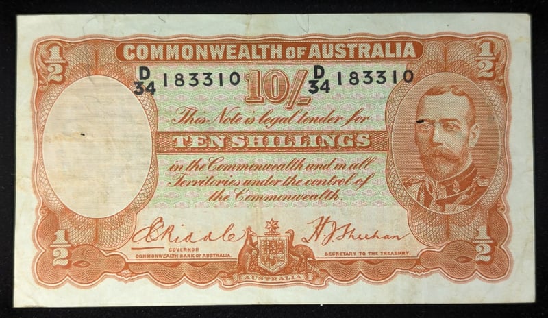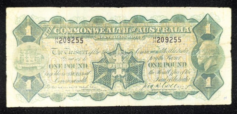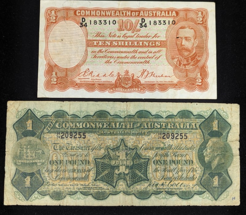 TWO COMMONWEALTH OF AUSTRALIA BANKNOTES Includes:1923 Commonwealth Of Australia One Pound Banknote Signed By Miller/Collins, Catalogue Value: $700,1936 Commonwealth Of Australia Ten Shilling Banknote Signed By Riddle/Sheehan, Catalogue Value: $375Condition: Fine 582958+29