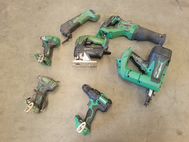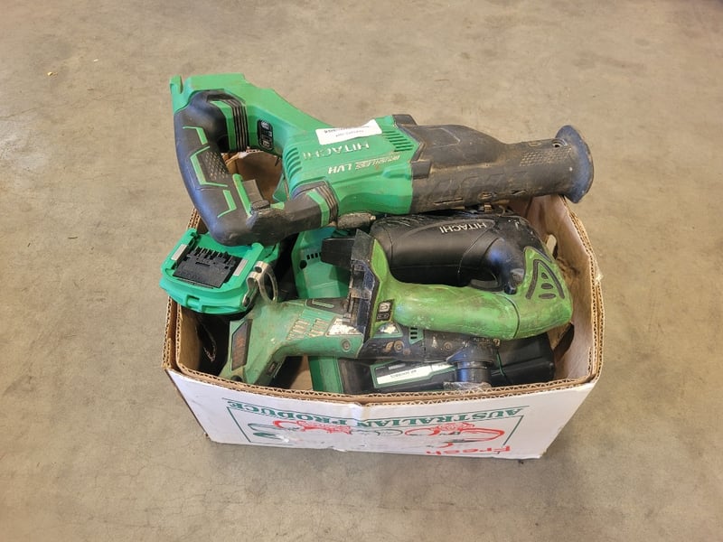 Hitachi and Hikoki Battery Tools Description: x5 Hitachi Battery Tools x2 Hikoki battery tools, Note: Used, unknown working condition, inspection recommended. Located: Acacia Ridge.
