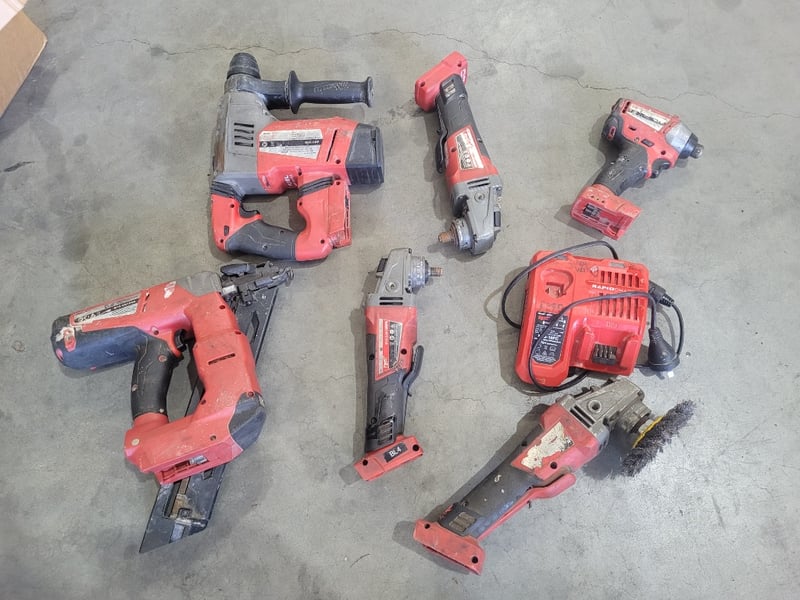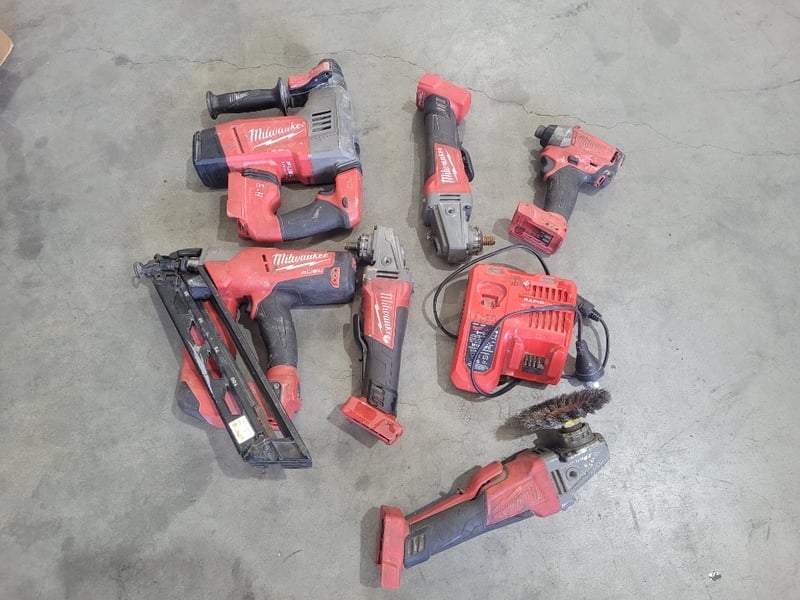 Milwaukee Battery Toolsl Description: x6 Milwaukee Battery Tools, Note: Unknown working condition, Battery charger not for tools, inspection recommended.