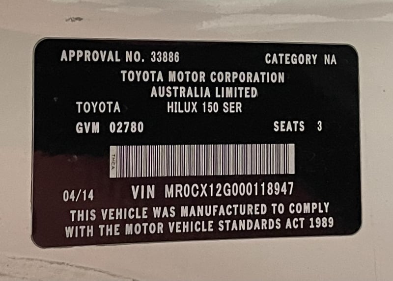 Make/Model: Toyota Hilux Workmate TGN16R