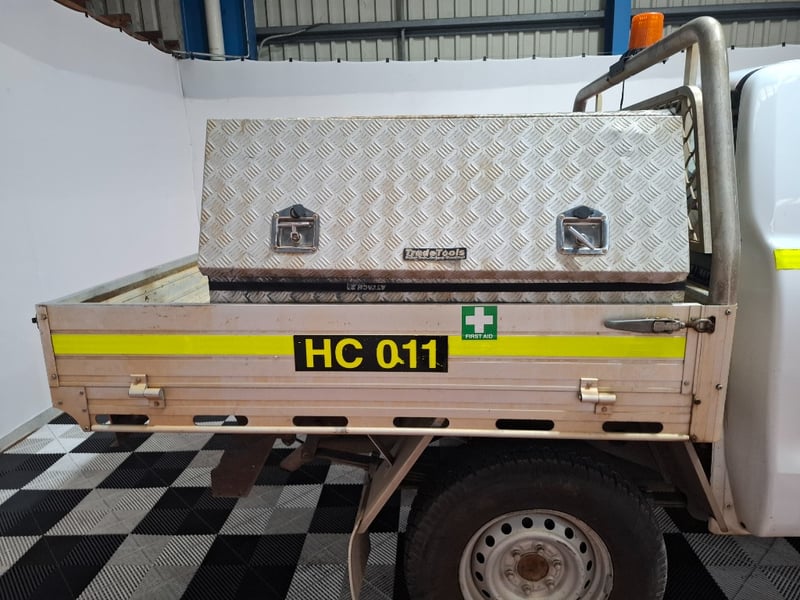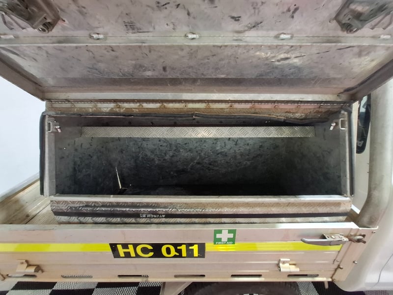 Heavy duty seat covers throughout, front row deep dish rubber floor mats, aluminium Duratray with tool box mounted RHS, 2 fore extinguishers, Orange beacon light. Service books and owners manual