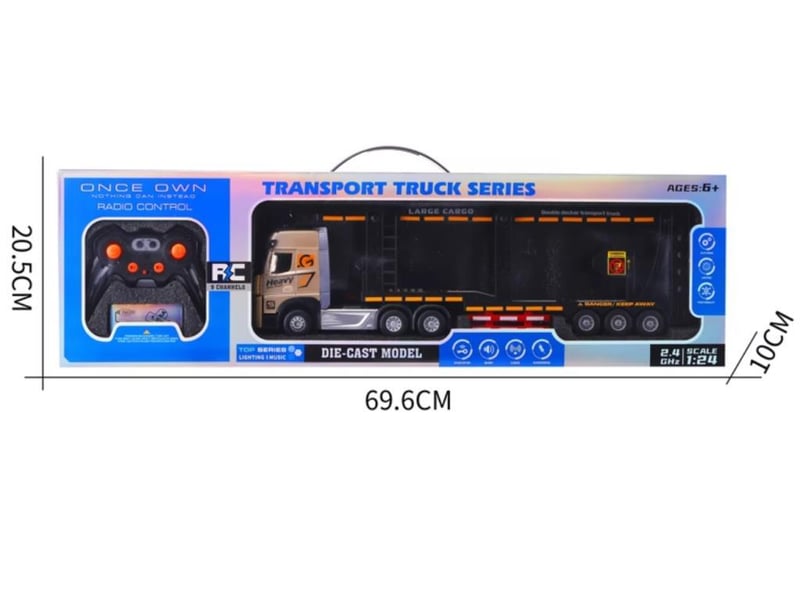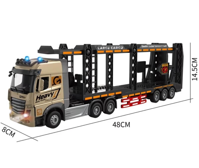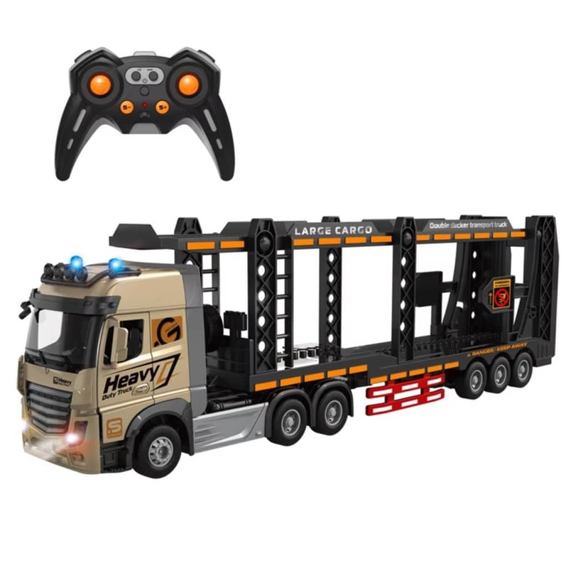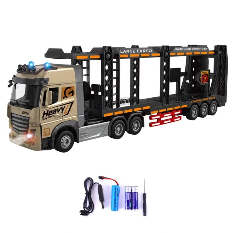 RC Car Carrier Truck 1/24 2.4G 9CH Alloy Double-layer Deck Transport Trailer Toys Carrier Truck with Lights & Music approx. 48cm Length USB Charge Cable. Long Play Time 2 x AA remote batteries included. (BRAND NEW IN BOX)