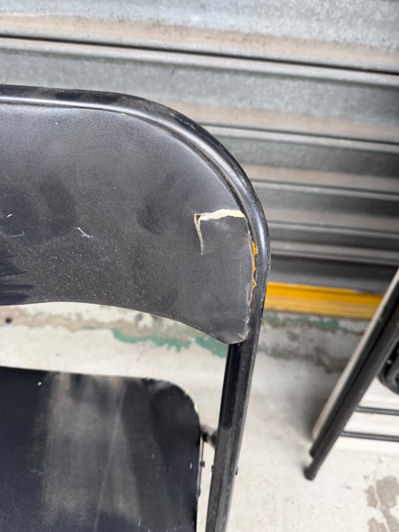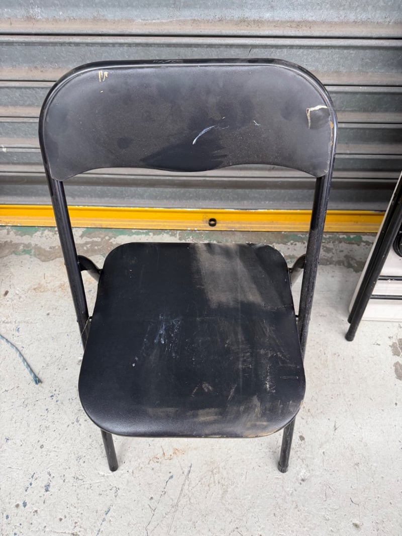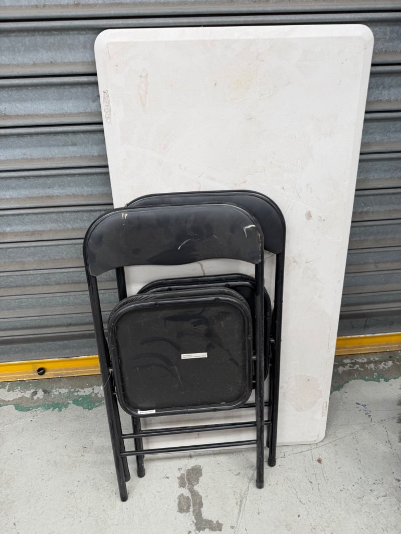 Assortment of 2x foldable chairs and 1x foldable table.