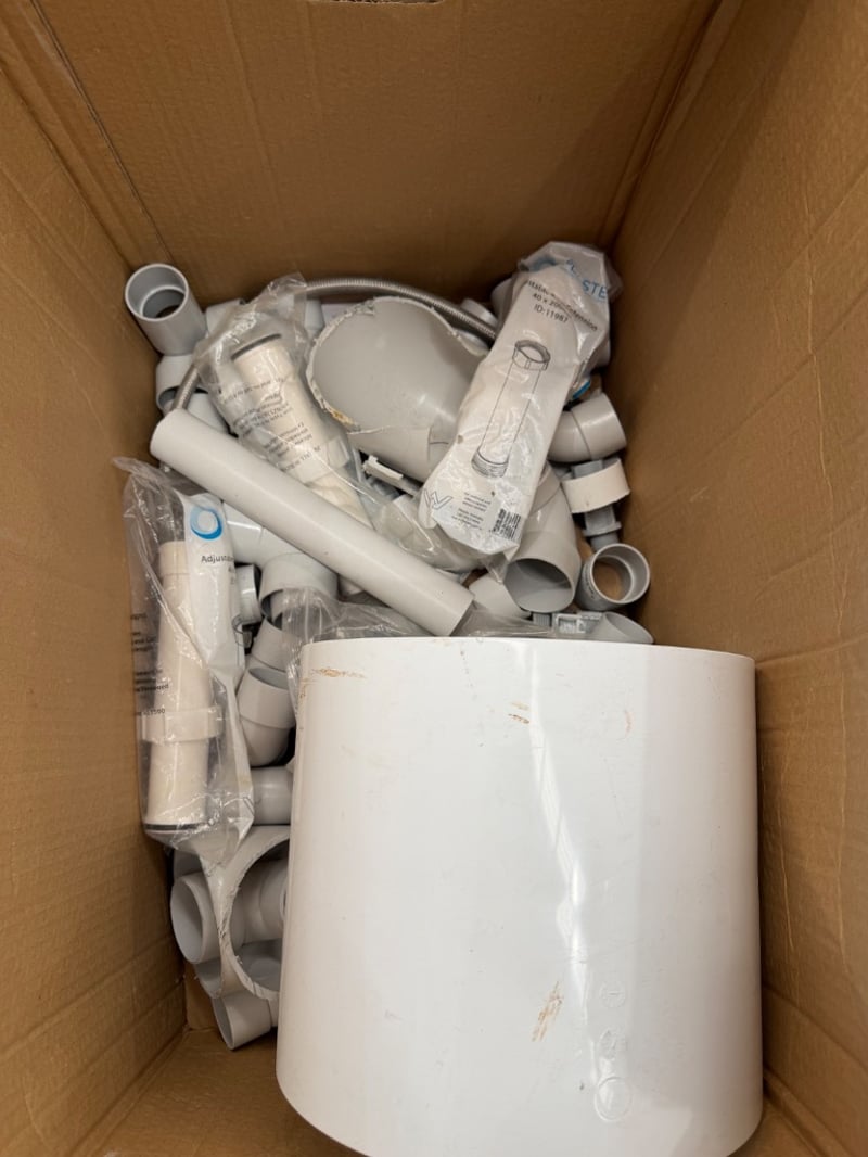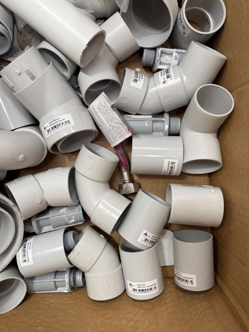 Assortment of fittings and tools for plumbing.