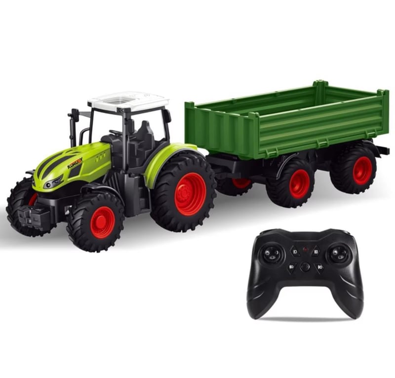 RC Farm Tractor and Trailor Tipping Dump Trailer 1/24 Scale 2.4G Electric Agricultural Machine Transport Vehicle With Lights & sound Long Play Time 25 Metre Remote Distance Approx 41cm in Length USB Charging Cable Awesome Cabin Detail trailer drop sides and Tilt 2 x AA Remote Batteries not included (BRAND NEW IN BOX) (Sometimes in the creation of images and videos there may be very small differences in the product itself or size comparison, so these images are used only for the visual effect of the product shown, however the exact product with its specifications and size is always shown in the later/earlier photos so please be aware of this.)