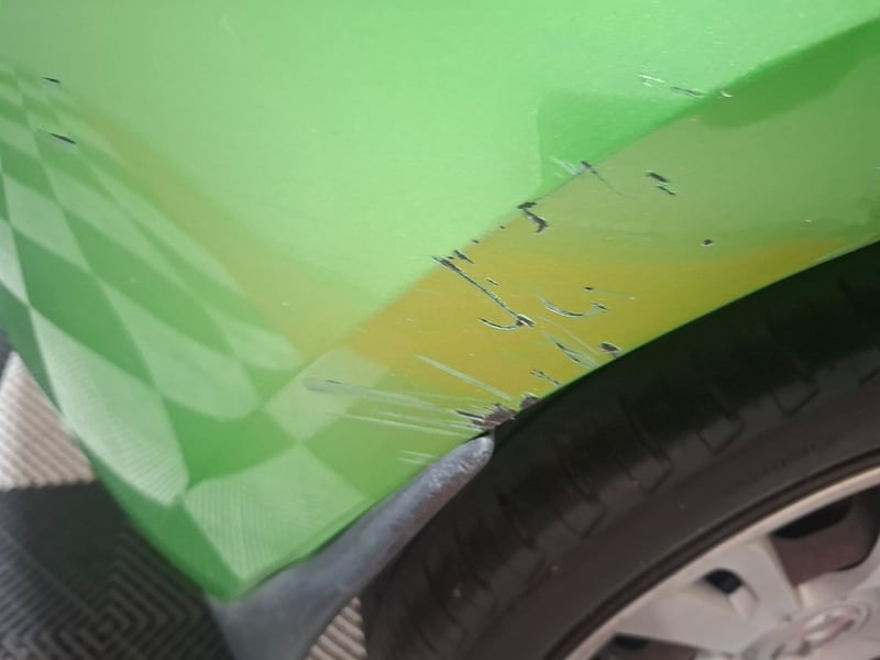 Drivers and front passenger windows do not go down from drivers door control. Exterior has visible damage to panels.