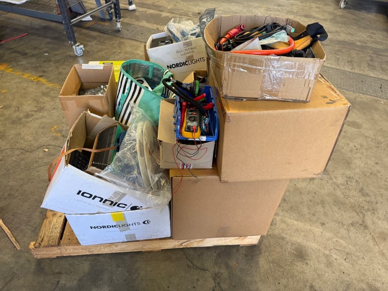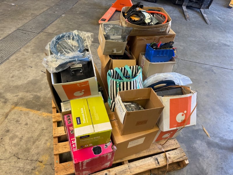 Assorted lot of electrical equipment including power cables, keyboards and multimeter reader Note: sold as lot