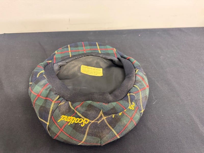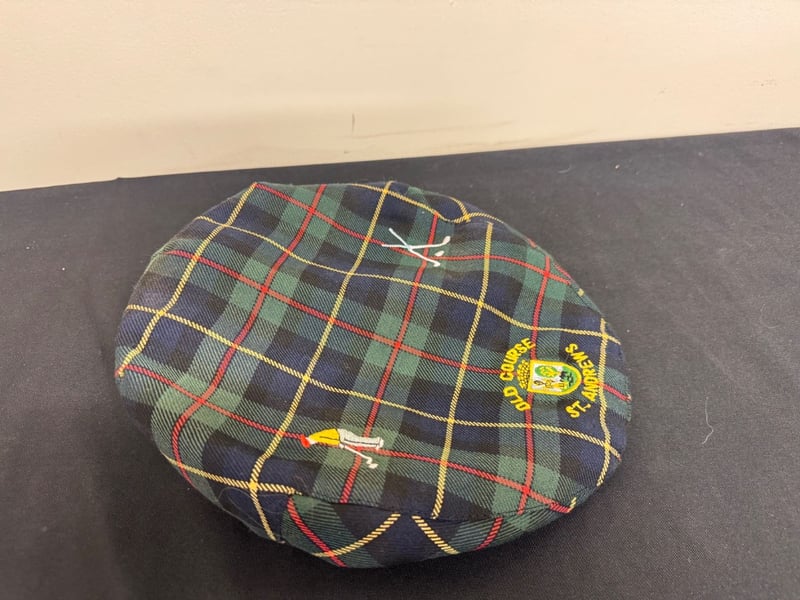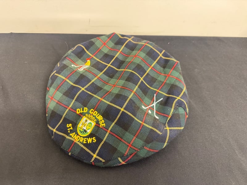 OLD COURSE ST ANDREWS TARTAN FLAT CAP Item Size: Height: 15cm, Width: 15cm, Depth: 10cm, Weight: 1Kg Condition: Fair - Refer To Images 584580+6