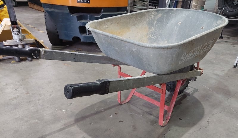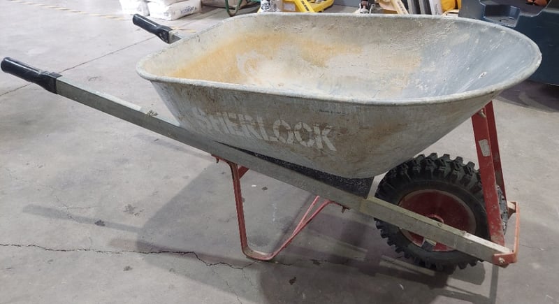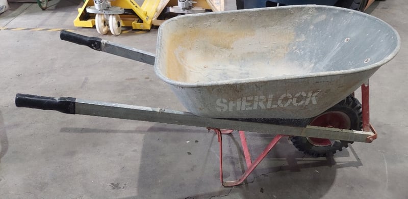 Sherlock brand wheelbarrow. Notes: signs of wear.